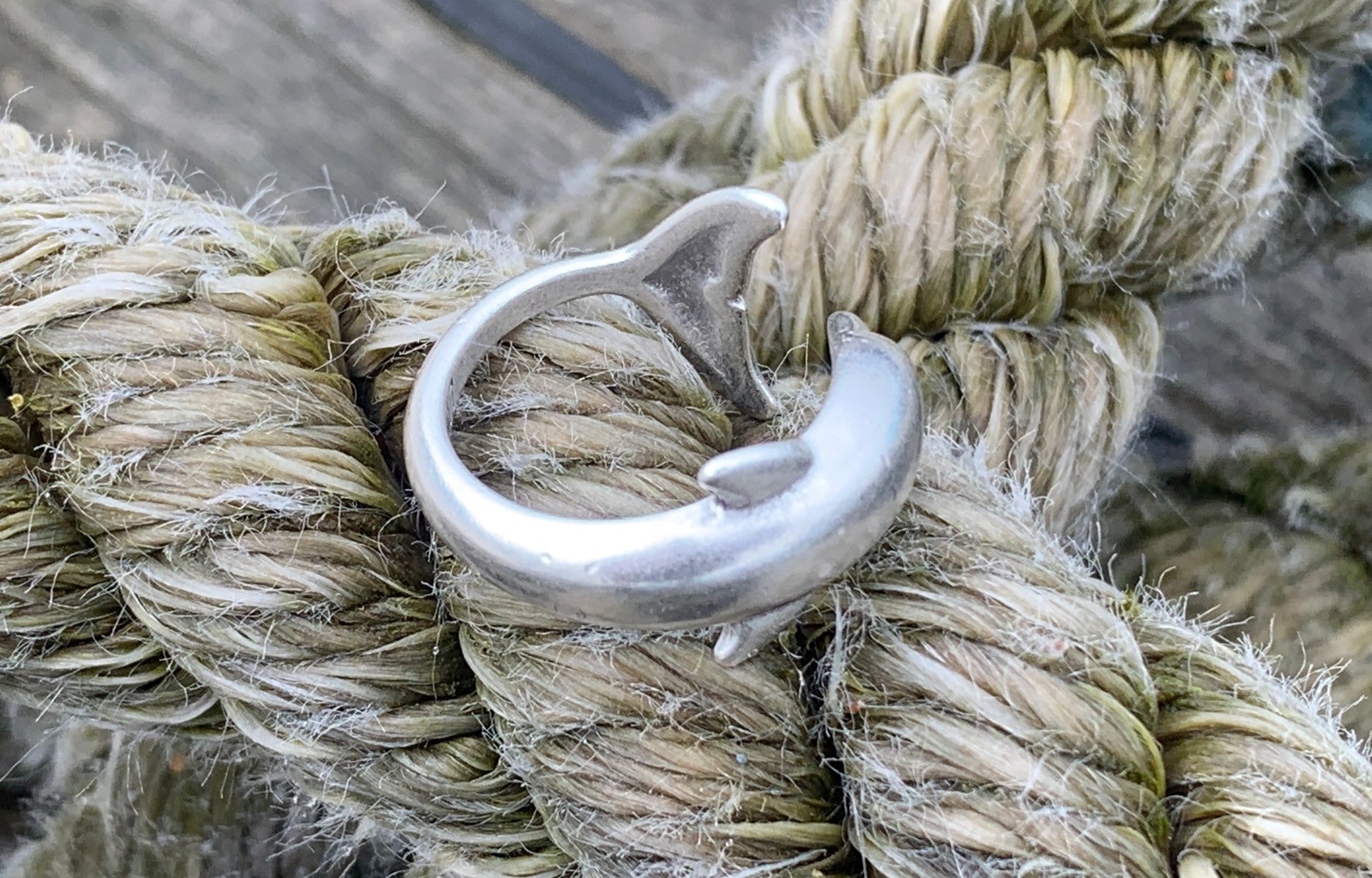 Curved in play and full of spirit, this adjustable pewter ring captures a dolphin mid-leap—tail and nose arcing around the finger in joyful motion. Smooth to the touch and sculpted with care, it offers a comfortable fit and a splash of ocean magic. A symbol of harmony, freedom, and connection, the Dolphin Ring brings a bit of the wild wherever you go.