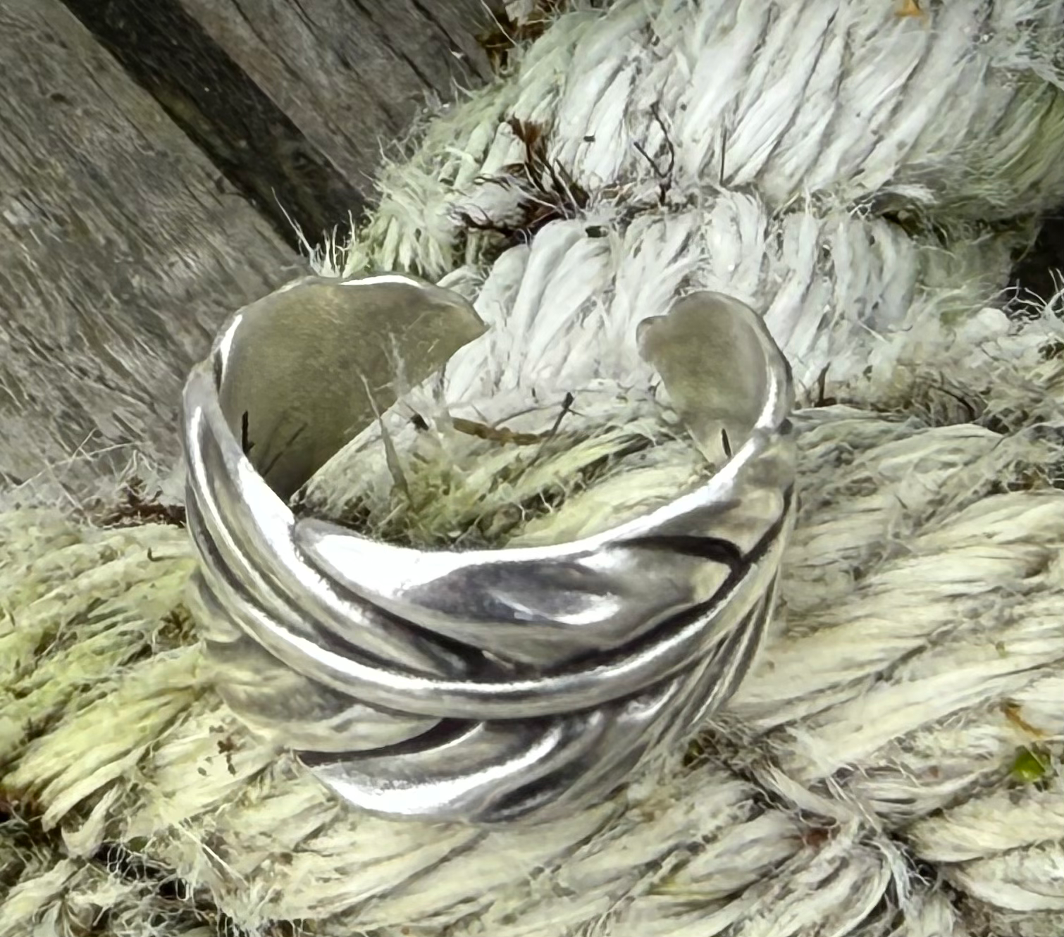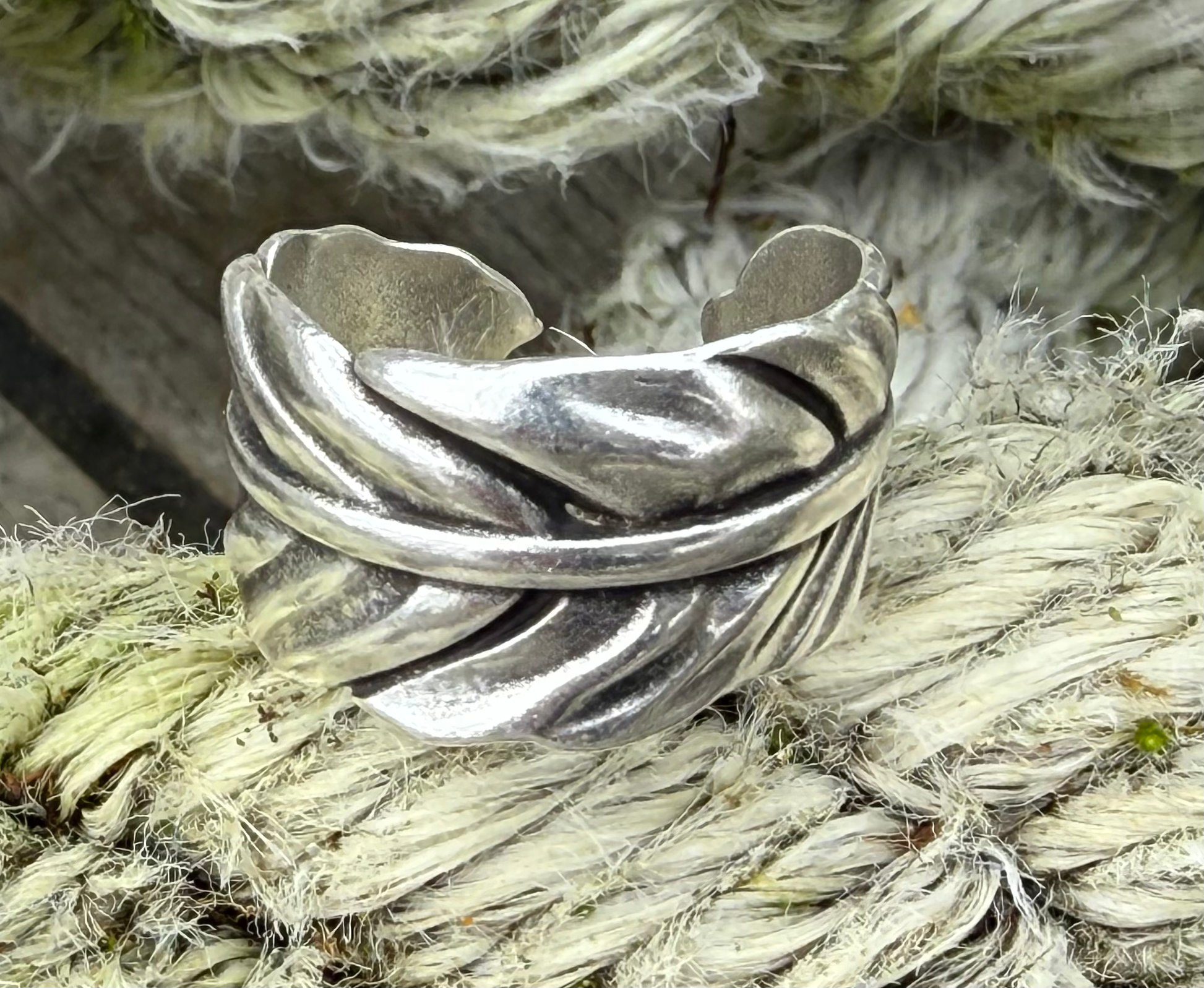 Light as breath, strong as story. This adjustable pewter ring wraps the finger in the soft curve of a feather—etched with detail, worn with ease. Cast in one size to flex gently around most hands, it carries a quiet symbolism of flight, freedom, and resilience. Earthy yet ethereal, it’s a piece that lands softly and stays with you.