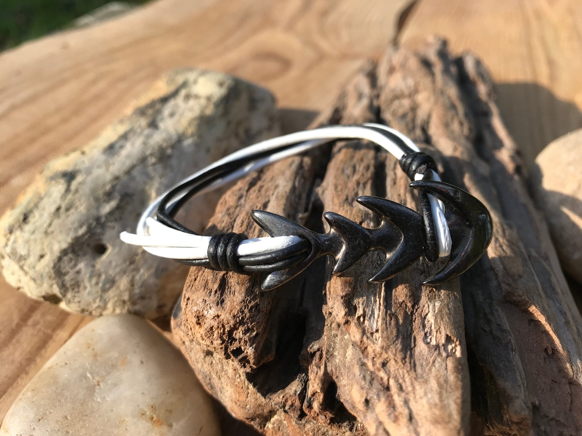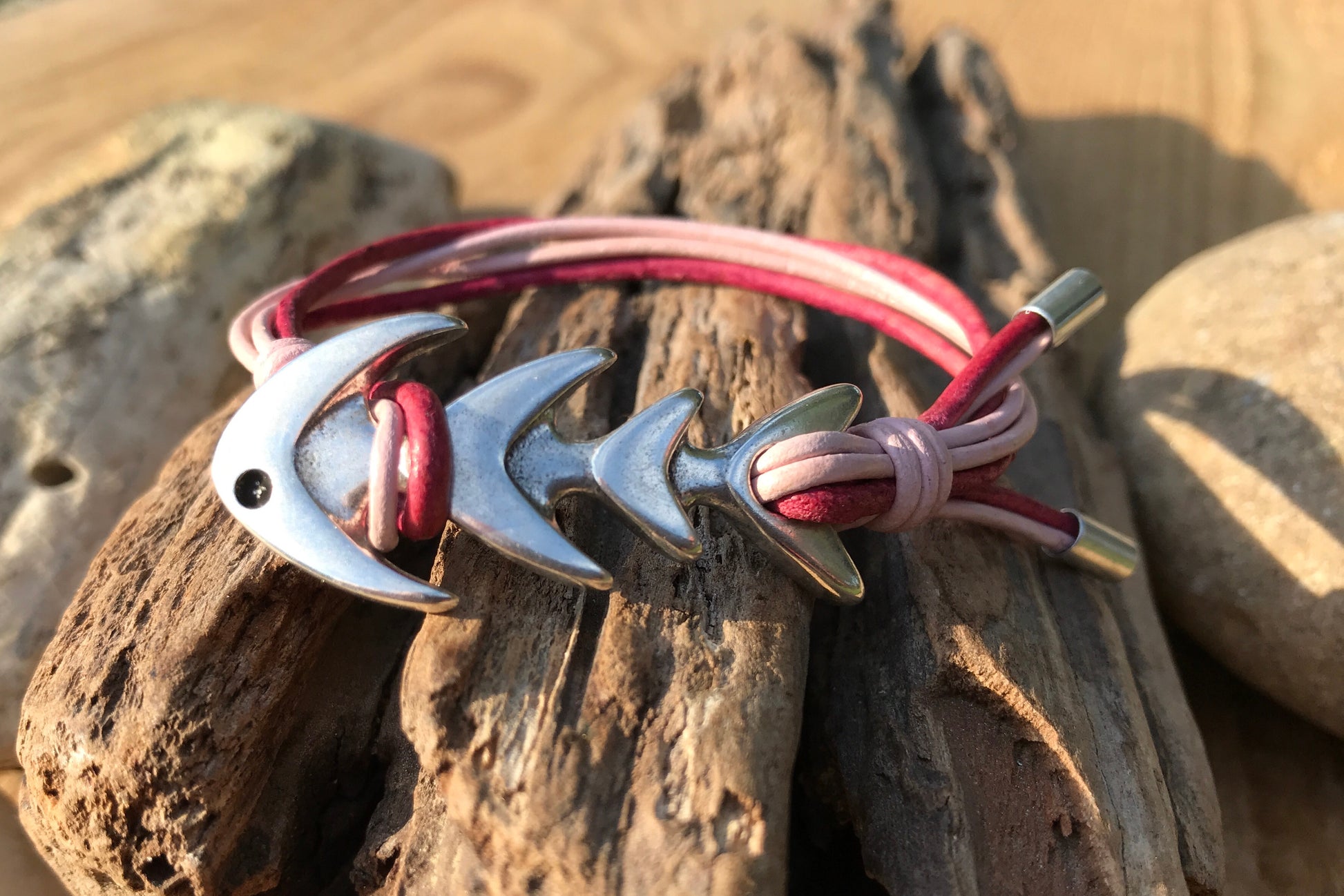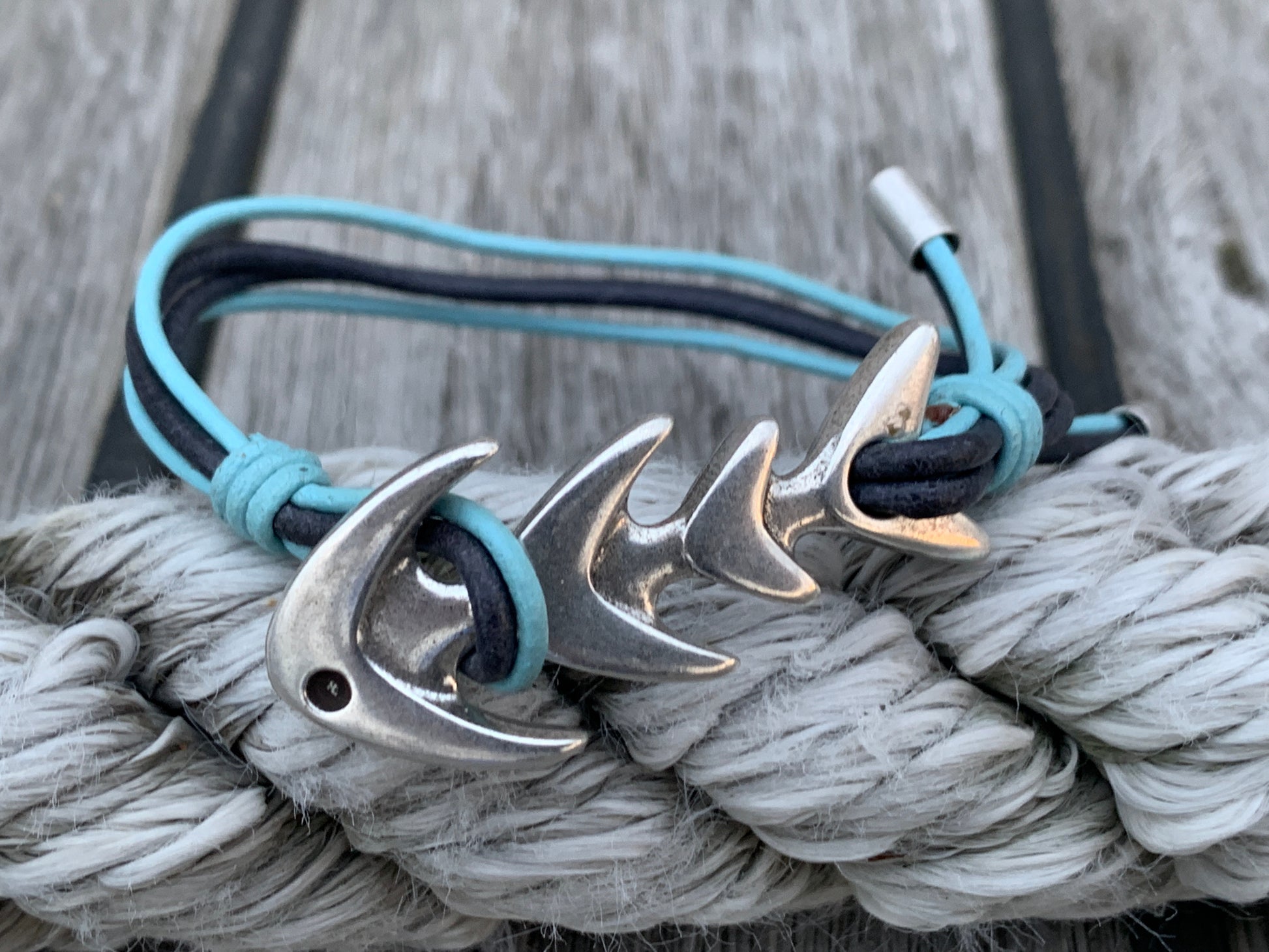 A nod to the sea’s stripped-back beauty, the Bony Fish bracelet features a stylised skeletal fish clasp, paired with fine strands of 2mm and 1.5mm leather in coastal tones and bold accents. Lightweight and full of character, it loops simply around the wrist, fastened with a flick of the tail. Playful yet primal, it’s the perfect catch for ocean lovers and free spirits alike.