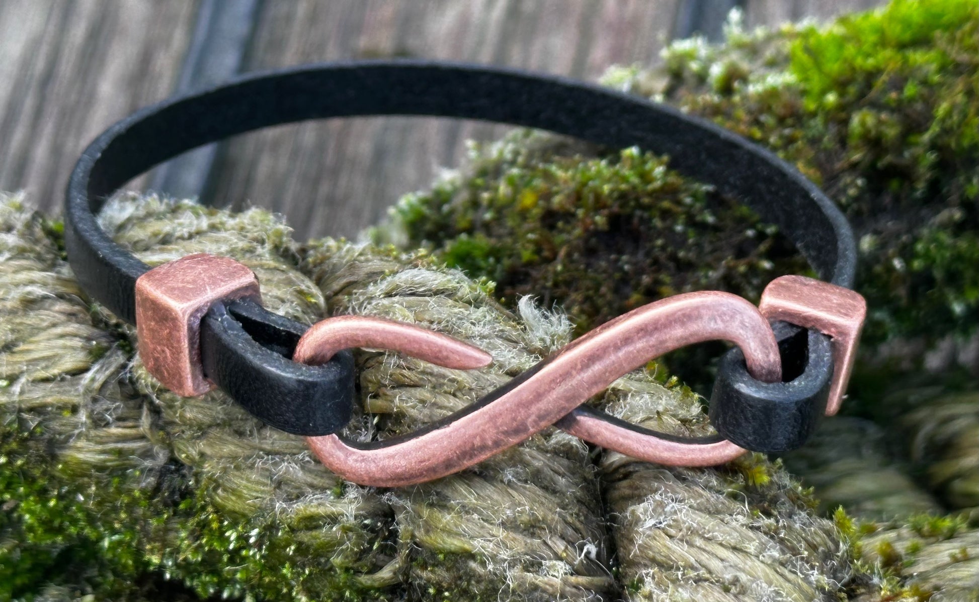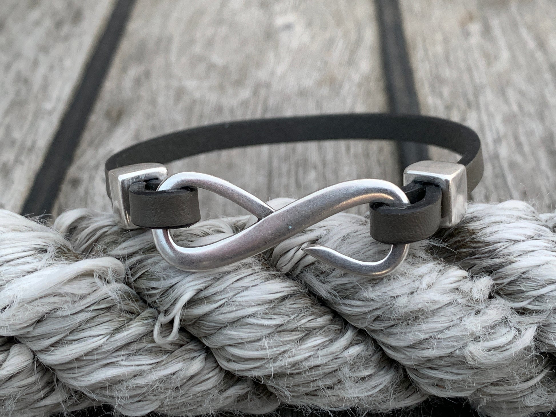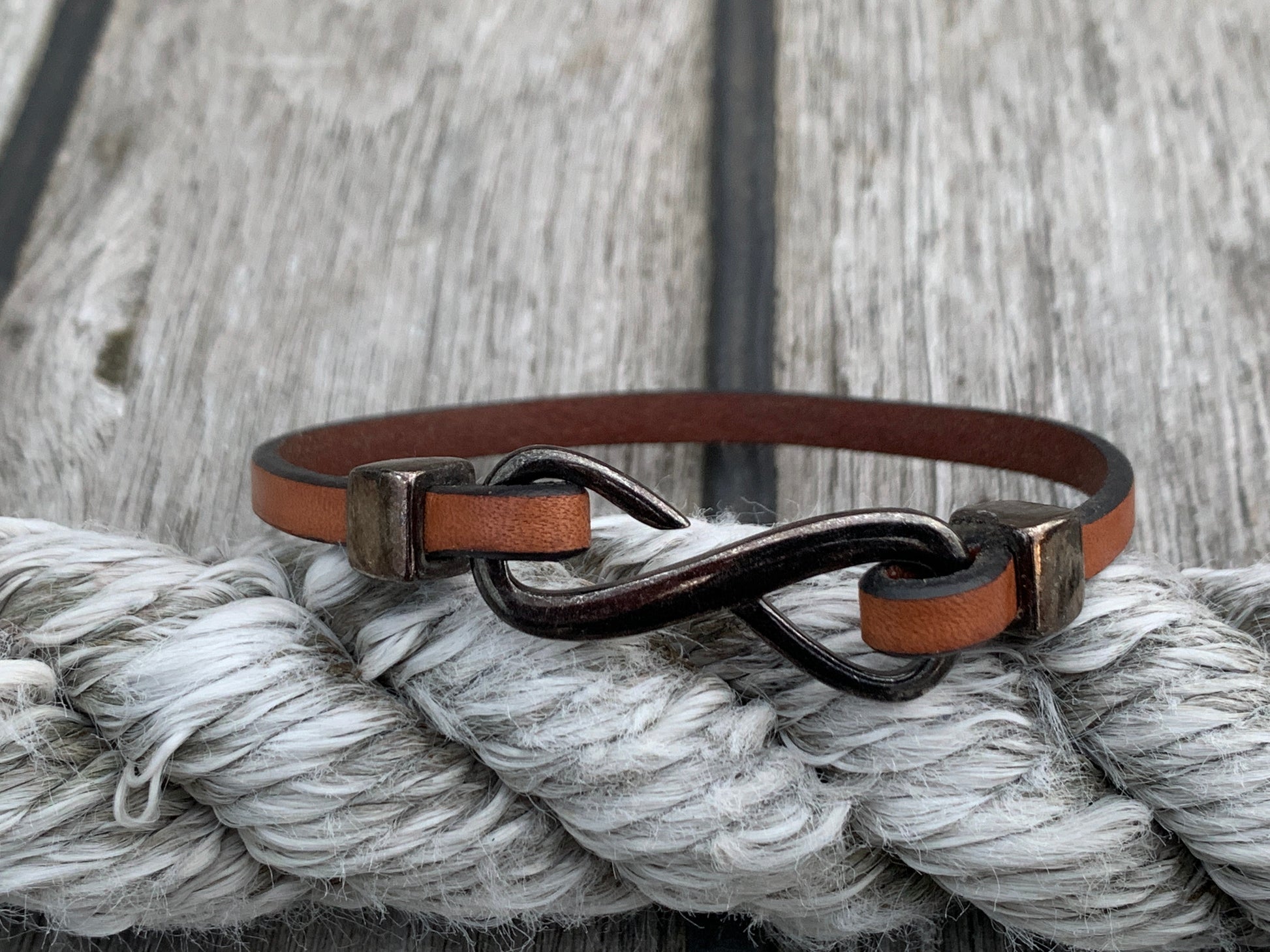 Infinity is cut from a single piece of 5mm flat leather, forming a clean, confident loop around the wrist. No twists. No fuss. Just one solid line — the kind that doesn’t need to say much to be understood. It wears in like your favourite boots and only gets better with time.