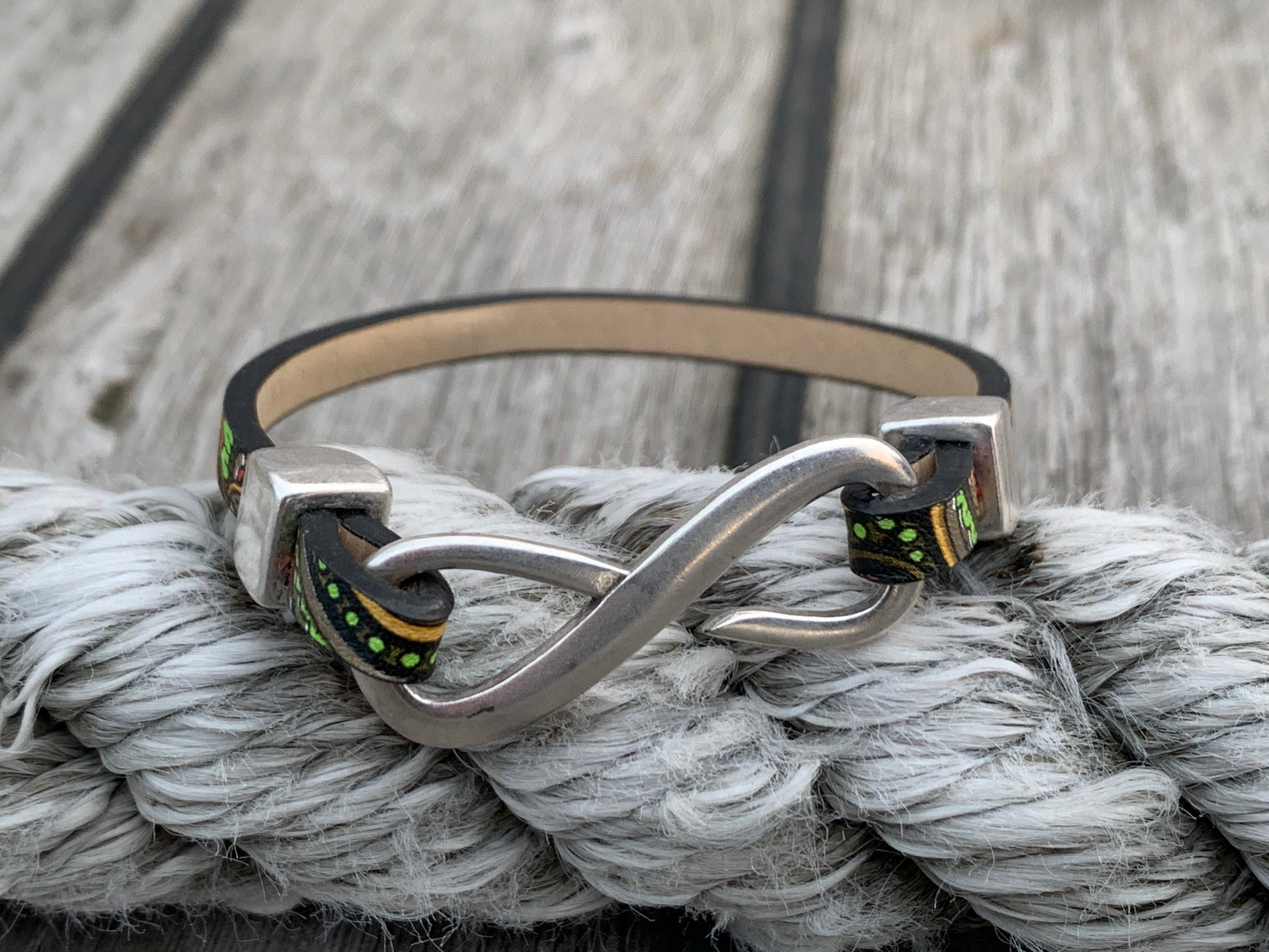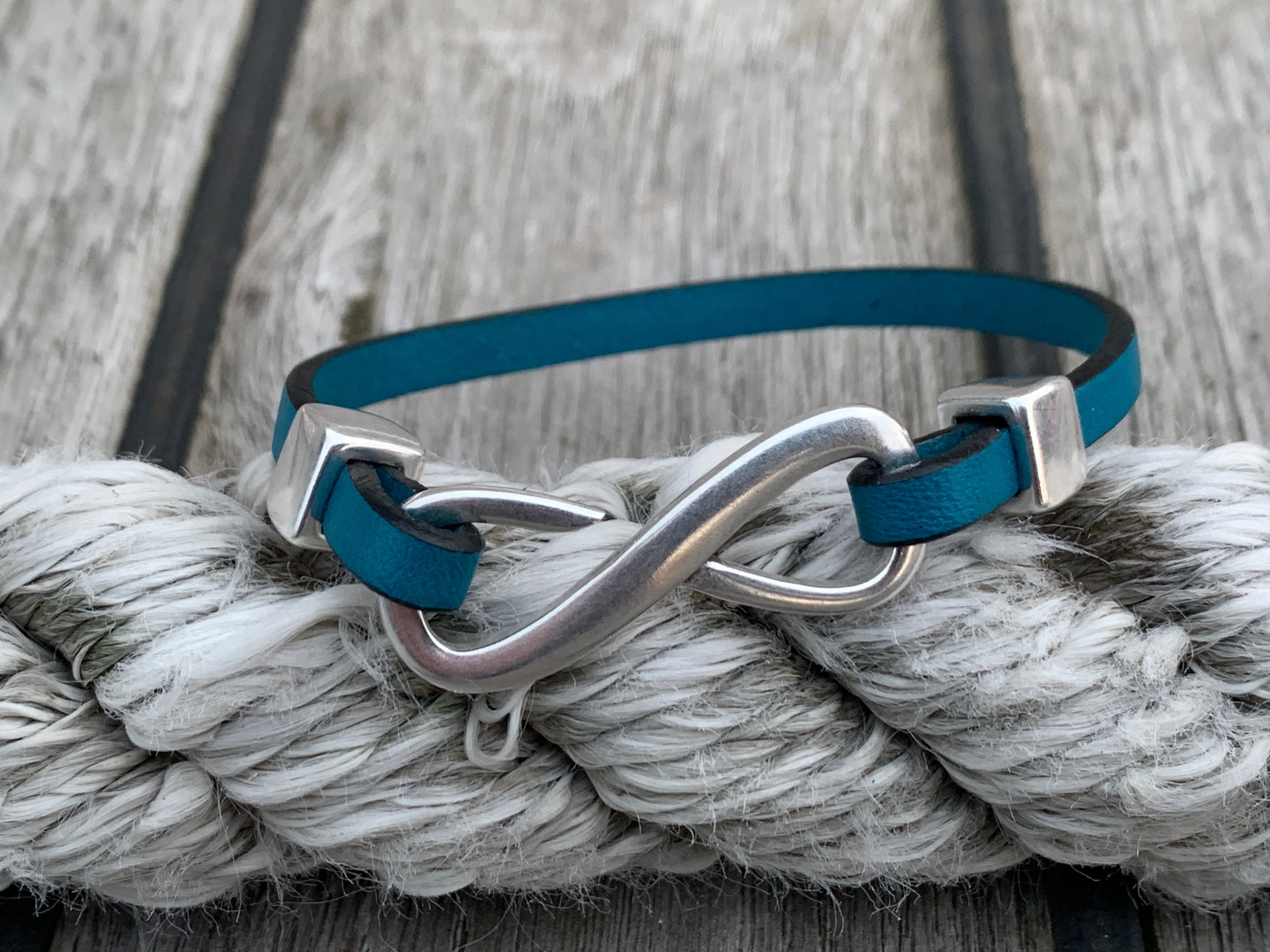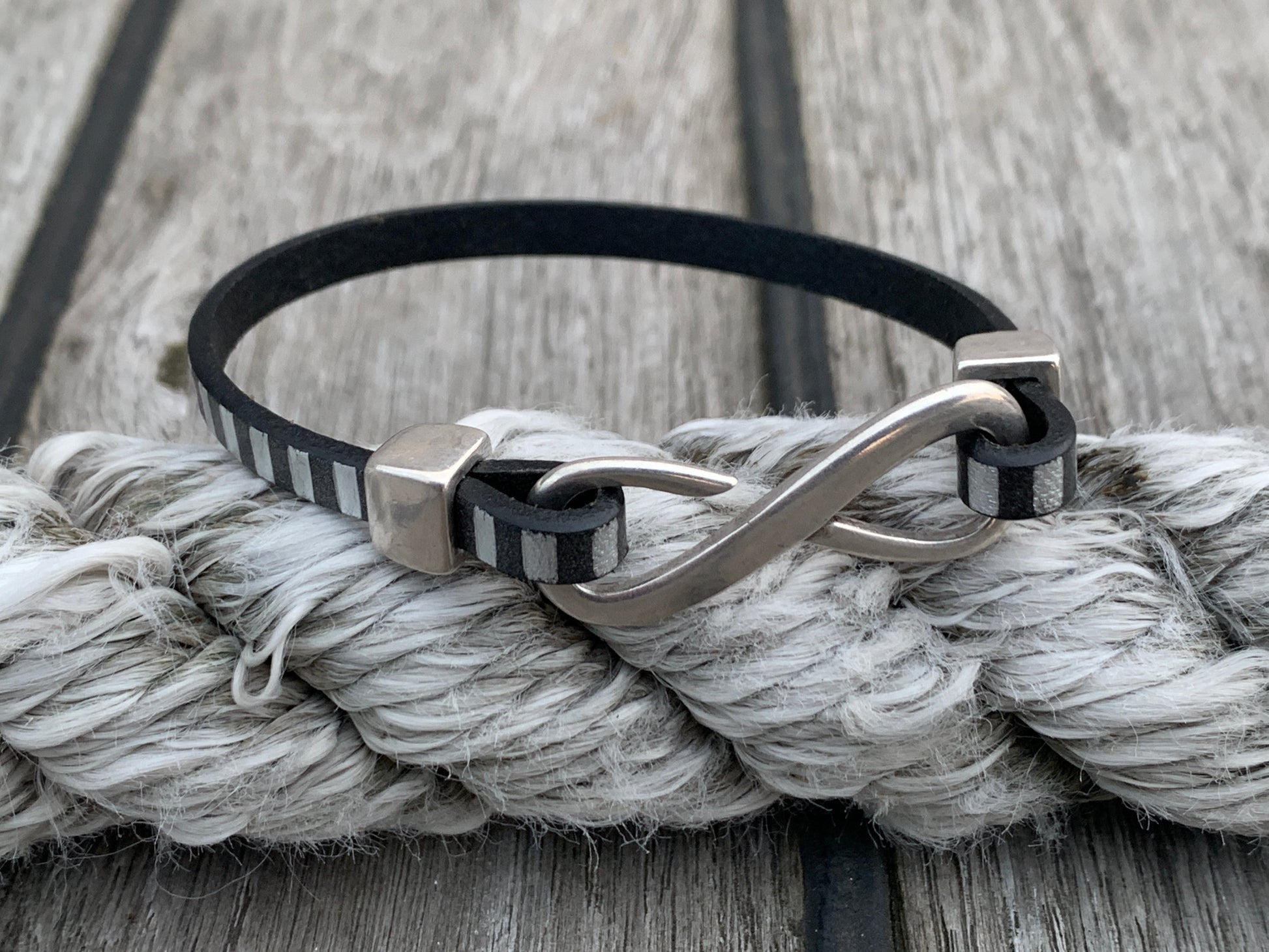 Infinity is cut from a single piece of 5mm flat leather, forming a clean, confident loop around the wrist. No twists. No fuss. Just one solid line — the kind that doesn’t need to say much to be understood. It wears in like your favourite boots and only gets better with time.