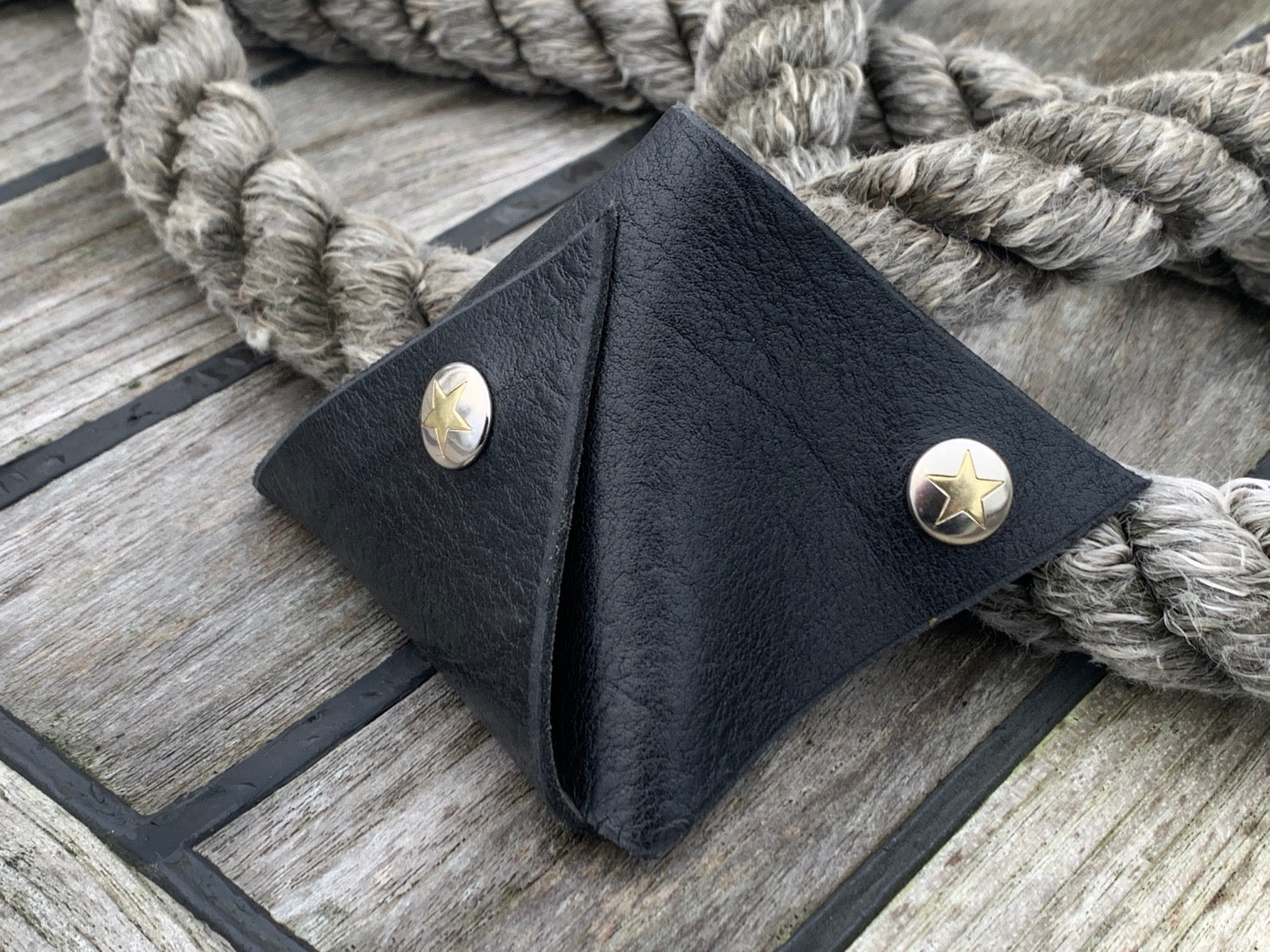 Unique samosa shaped leather wallet. Handmade with premium quality leather. The wallet holds over £20 in change and has a unique design where it can be opened on both sides.